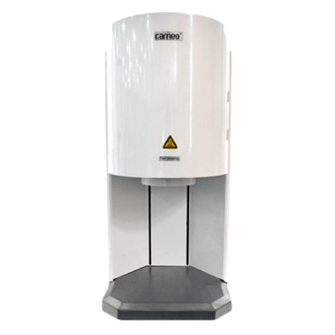 This sintering furnace works without any pollution. Available as both small and large furnaces. The large furnace is capable of sintering 70 teeth in 3.5 hours. The small furnace is capable of sintering 30 units in 2.5 hours.